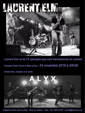 24 novembre 2018 Venue: Entre Terre et Mer Address: Rue du Casino 19 Zipcode: 1673 Country: Suisse Website: https://terremer.ch/